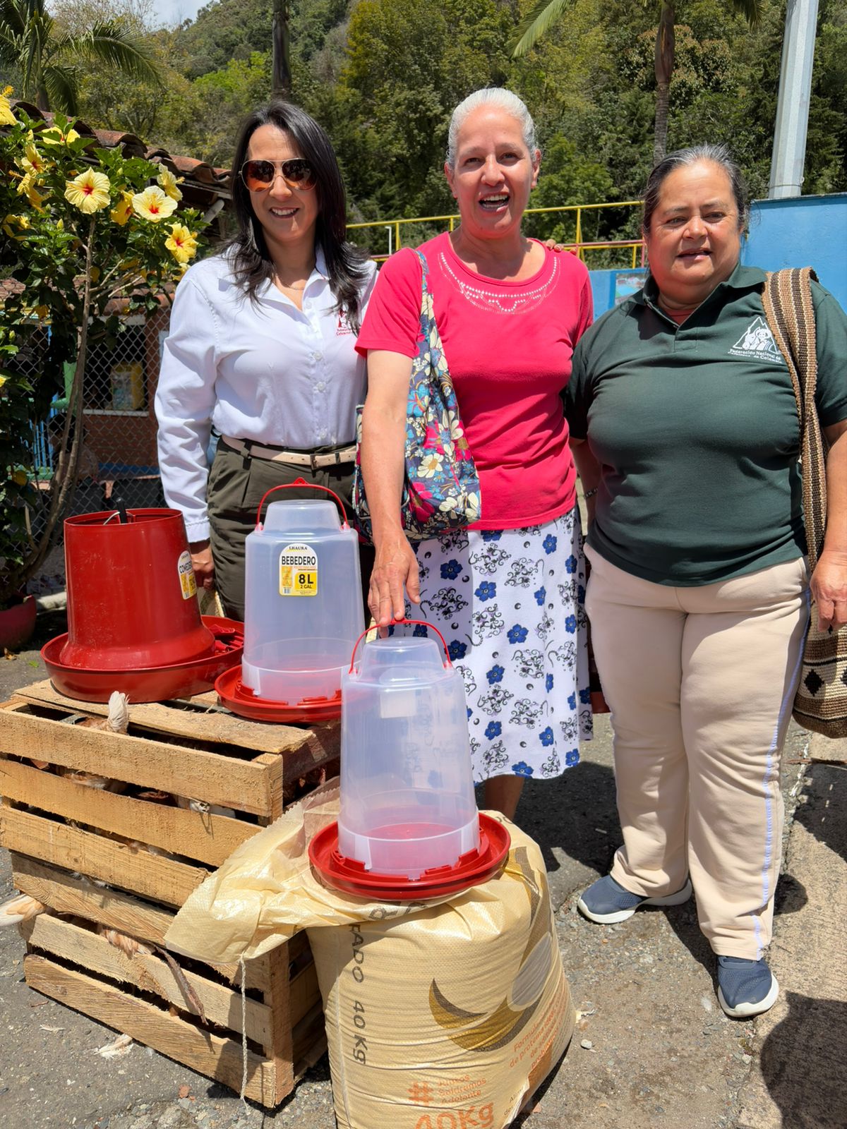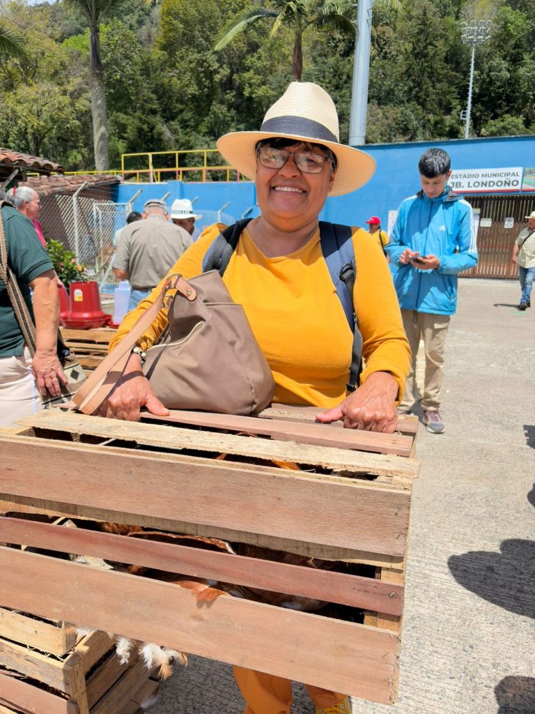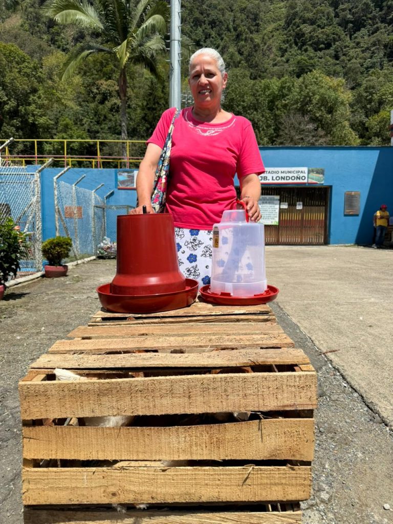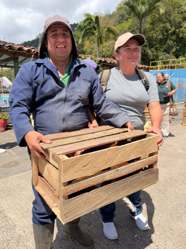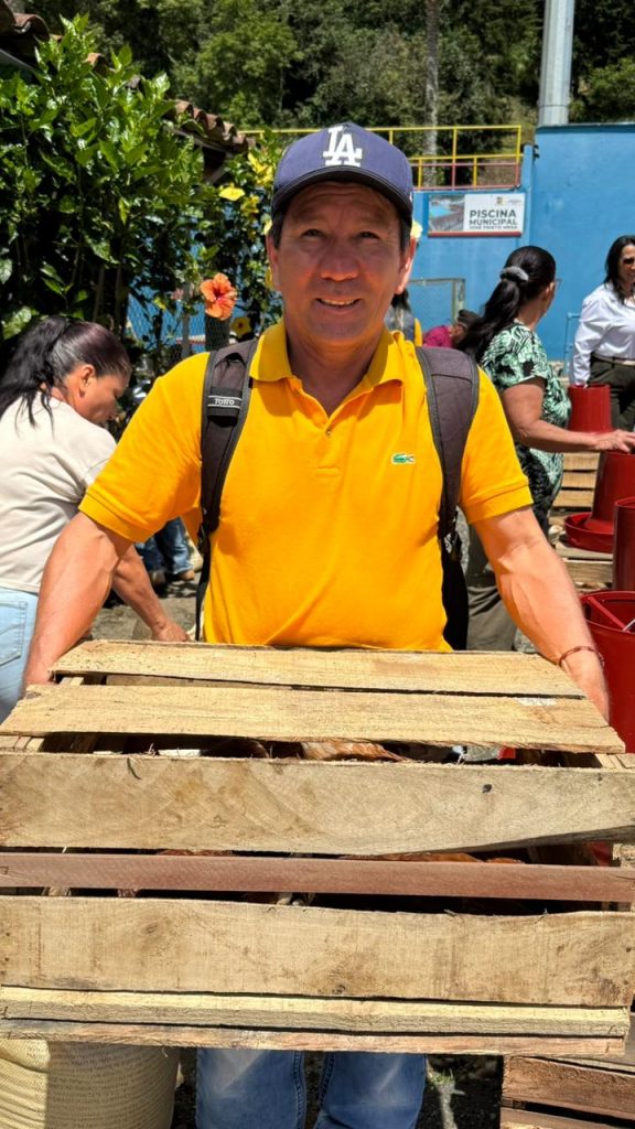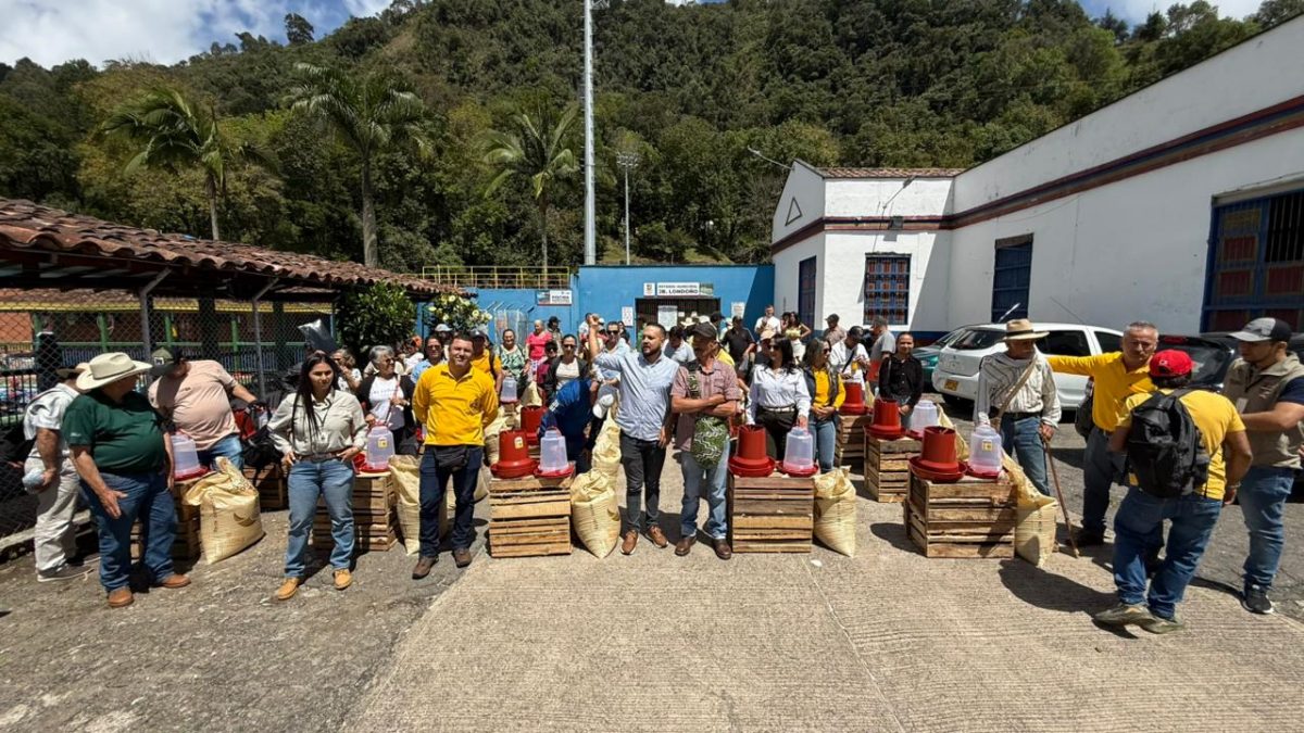 En el municipio de Jericó se realizó la entrega de 50 kits de seguridad alimentaria a igual número de familias caficultoras, como parte del proyecto de fortalecimiento a la caficultura con enfoque en productividad y bienestar familiar. Cada kit incluyó 10 gallinas, bebedero, comedero y un bulto de alimento, con el propósito de apoyar la producción de alimentos en las fincas. De igual manera, la administración municipal complementó la iniciativa con la entrega de un kit de semillas, promoviendo así la diversificación productiva y el mejoramiento de la calidad de vida de las familias cafeteras de la región.