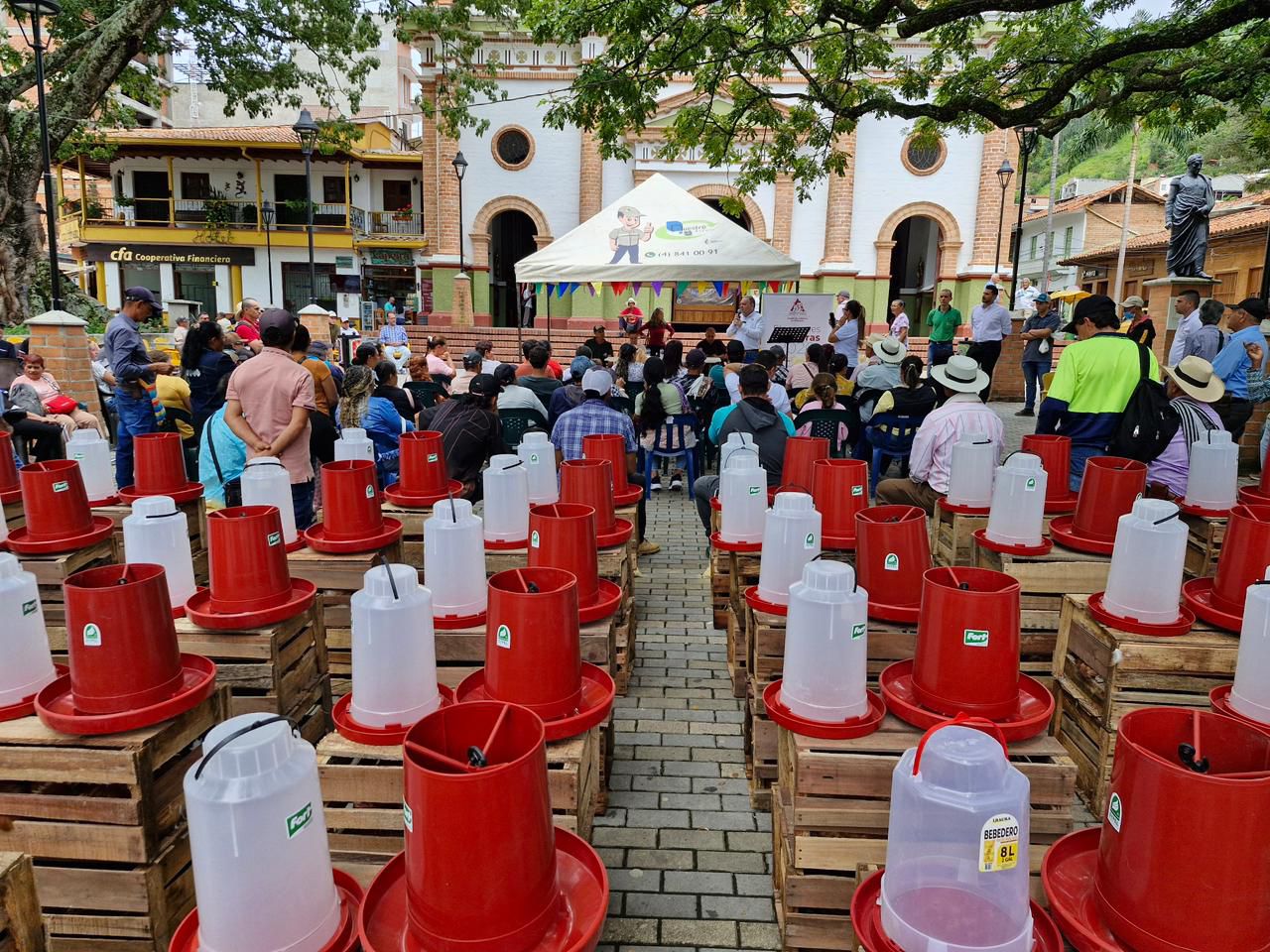 En el municipio de Ciudad Bolívar se realizó la entrega de 97 kits de seguridad alimentaria a familias caficultoras, como parte de una estrategia que busca fortalecer la autosuficiencia alimentaria y mejorar la calidad de vida en el campo. Cada kit incluye 10 gallinas ponedoras, un bulto de concentrado, un bebedero y un comedero, elementos que permitirán a las familias iniciar o fortalecer sus sistemas de producción avícola para el consumo y el sostenimiento del hogar.