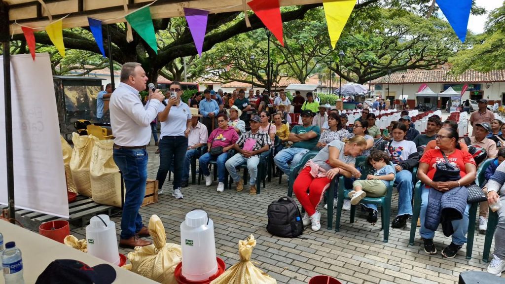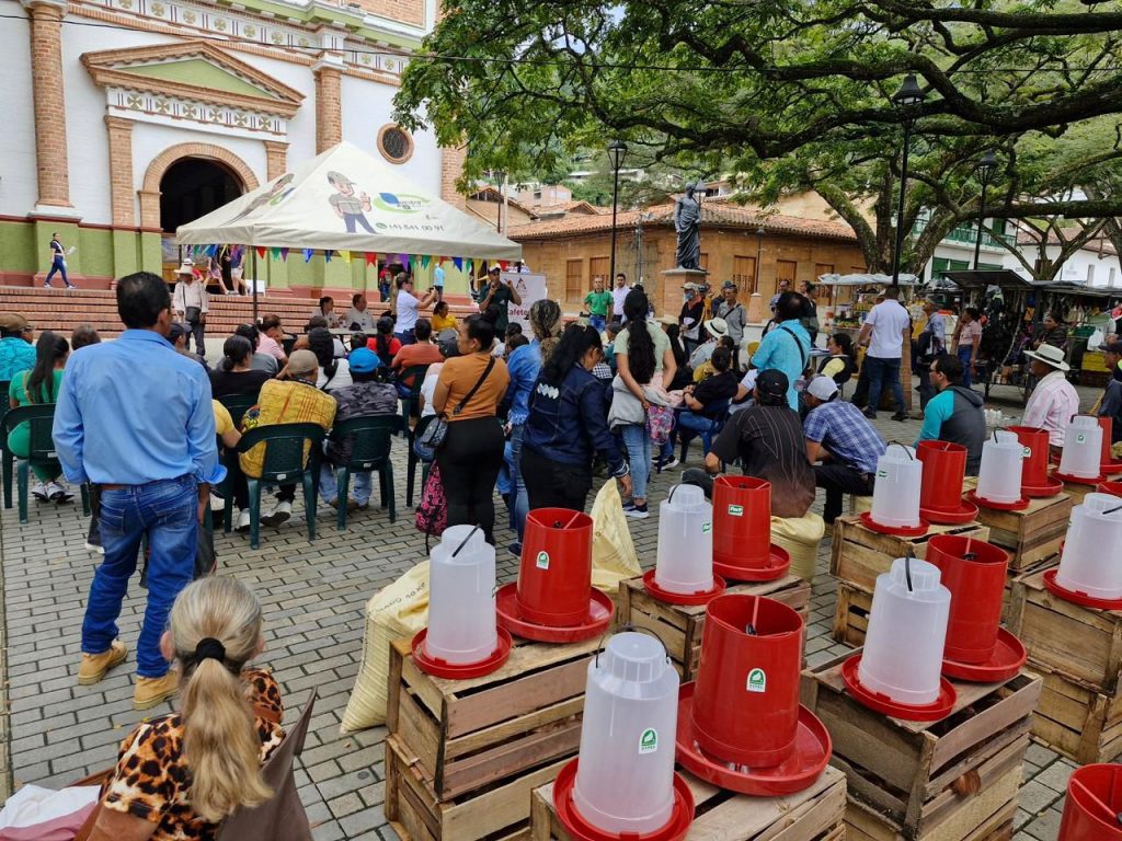 En el municipio de Ciudad Bolívar se realizó la entrega de 97 kits de seguridad alimentaria a familias caficultoras, como parte de una estrategia que busca fortalecer la autosuficiencia alimentaria y mejorar la calidad de vida en el campo. Cada kit incluye 10 gallinas ponedoras, un bulto de concentrado, un bebedero y un comedero, elementos que permitirán a las familias iniciar o fortalecer sus sistemas de producción avícola para el consumo y el sostenimiento del hogar.