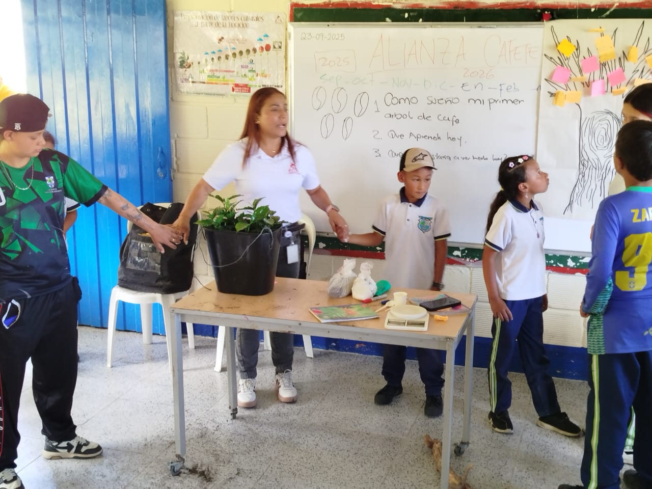 Durante la jornada, los estudiantes tuvieron la oportunidad de interactuar y explorar diversas actividades asociadas al cultivo de café, aplicando la metodología de “aprender haciendo”. En su propio entorno escolar, los niños y niñas realizaron labores vivenciales como el trazado, surcado, delimitación del cultivo y la construcción de un germinador. Para formalizar esta experiencia y cimentar la nueva siembra, la Alianza Cafetera se vinculó directamente con la entrega de materiales, insumos, herramientas, equipos y almácigos.