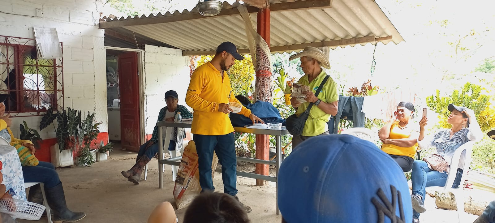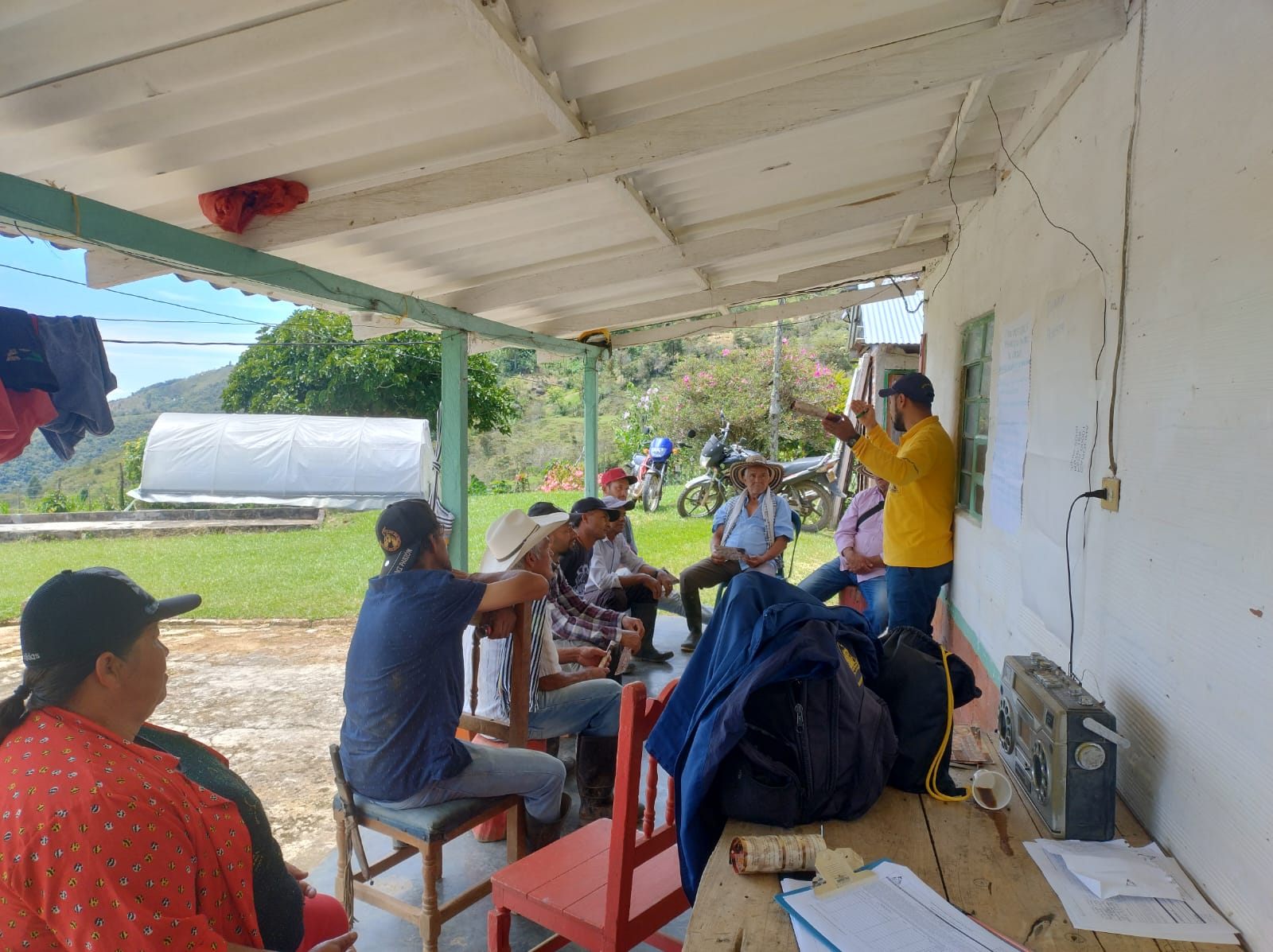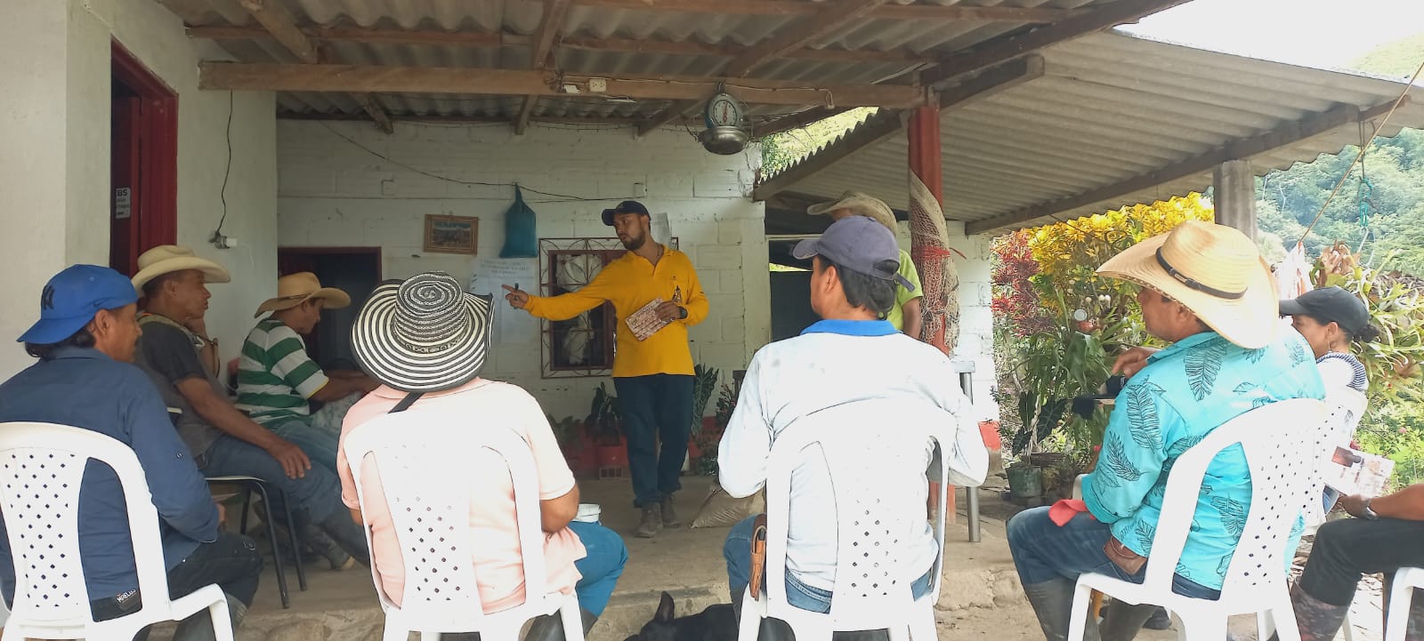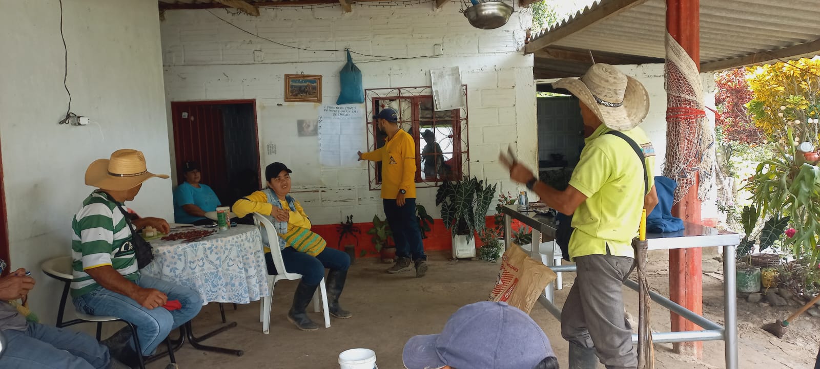 En el municipio de Gómez Plata, se realizaron reuniones de postcosecha en las veredas Quebradona y La Primavera, donde los caficultores participaron en una jornada de formación sobre las siete prácticas de beneficio del café.