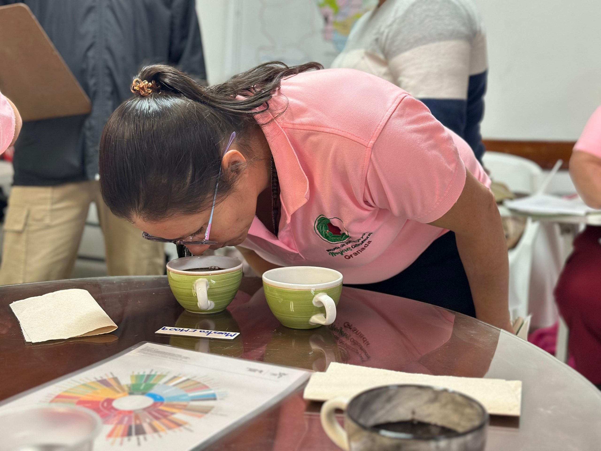 Durante el encuentro, se realizó un taller de acercamiento a la catación, en el que varias asistentes llevaron muestras del café producido en sus propias fincas. Estas fueron tostadas, molidas y utilizadas en un ejercicio práctico que les permitió reconocer las características sensoriales de sus cafés. La actividad, enmarcada en el enfoque de “Café de Mujeres”, resaltó la importancia de su rol en la producción cafetera y promovió la valoración de su trabajo desde la semilla hasta la taza.