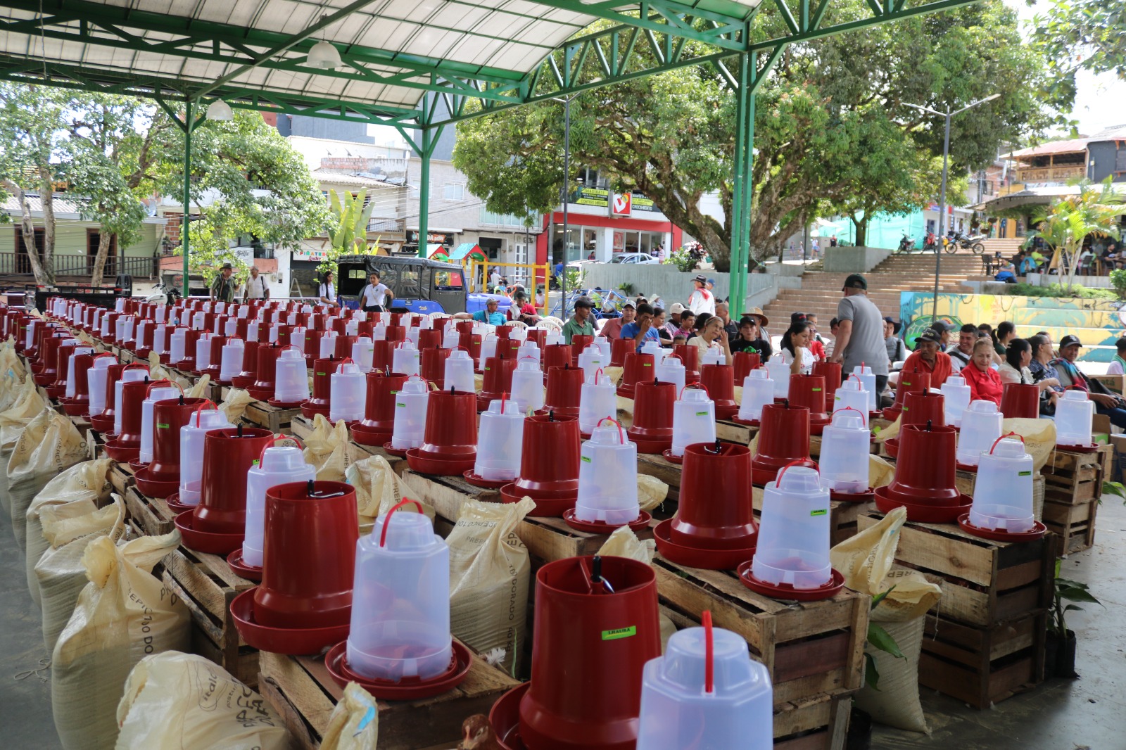 Gracias al trabajo articulado entre el Comité Departamental de Cafeteros de Antioquia, la Administración Municipal de San Luis y el Comité Municipal de Cafeteros, 114 familias cafeteras del municipio fueron beneficiadas con la entrega de colinos de plátano, gallinas ponedoras, comederos y abono, elementos que fortalecen la producción y la seguridad alimentaria en sus hogares.