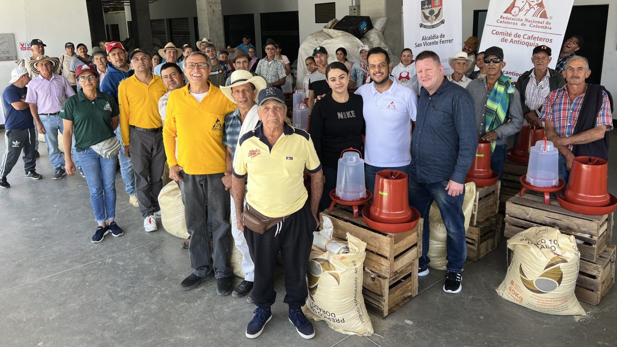 En el marco del convenio de fortalecimiento a la caficultura entre la Alcaldía de San Vicente de Ferrer y el Comité de Cafeteros, se realizó la entrega de kits de seguridad alimentaria a 40 familias del municipio. Cada dewa4dku kit incluye 10 aves de postura, un comedero, un bebedero y un bulto de concentrado, elementos que contribuirán a mejorar la nutrición y el sustento de los hogares caficultores.