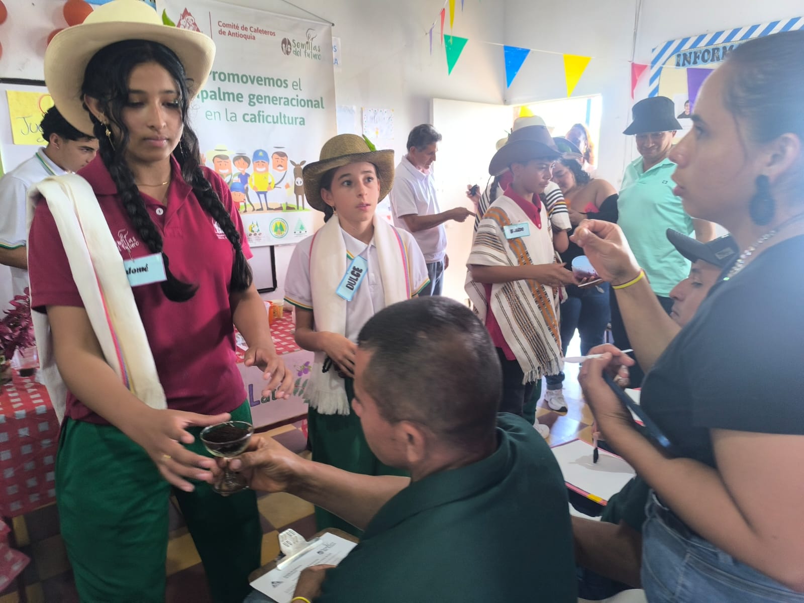El evento también contó con la participación de estudiantes de primaria, quienes, en un emotivo acto de integración generacional, asumieron el compromiso de continuar con el cuidado del cafetal escolar. Esta experiencia reafirmó el propósito de formar jóvenes apasionados por el café, capaces de comunicar, crear y mantener viva la tradición cafetera en su territorio.