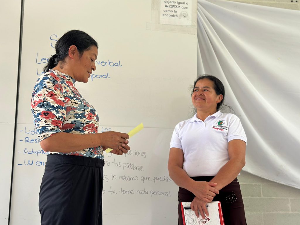 La capacitación se enfocó en herramientas para el liderazgo efectivo, la comunicación asertiva, el trabajo en equipo y la resolución de conflictos, entre otras habilidades esenciales. Con esta formación, las mujeres caficultoras participantes de Peque están mejor preparadas para liderar sus proyectos productivos, impulsar sus emprendimientos y generar un impacto positivo en sus comunidades.