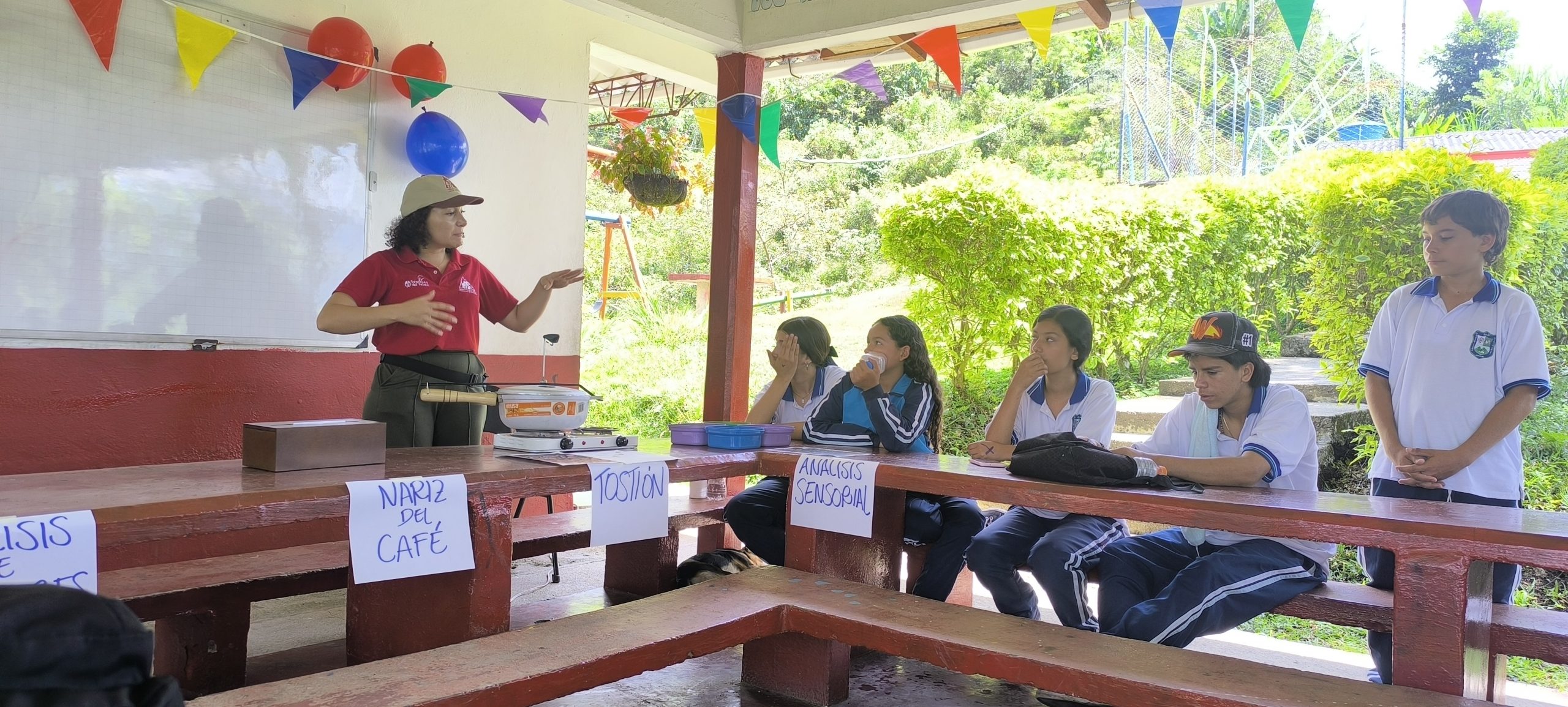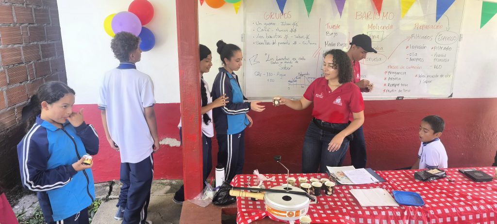 Además, los estudiantes se acercaron al mundo del café a través de experiencias sensoriales, aprendiendo sobre diferentes métodos de preparación y realizando una catación guiada con apoyo de la rueda de sabores y la nariz del café. Esta jornada buscó crear conciencia sobre el proceso de preparación de un buen café, destacando su valor como una fusión de arte, ciencia y técnica, en manos de las nuevas generaciones de caficultores colombianos.