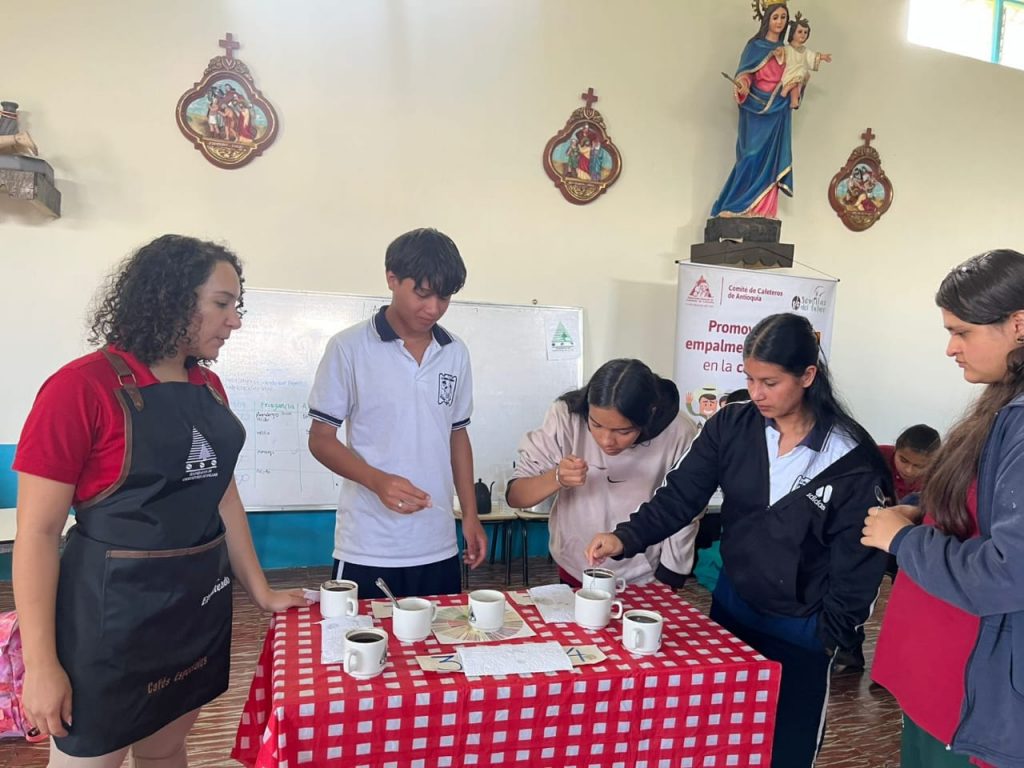 El proyecto Semillas del Futuro llevó a cabo una enriquecedora jornada en la I.E.R. La Carbonera, sede Risaralda, del municipio de Andes. En articulación con la Cooperativa de Caficultores de Salgar, 32 estudiantes participaron en un mágico encuentro con los sabores, aromas y fragancias del café, donde aprendieron sobre los cuidados necesarios para obtener una taza especial y cómo identificar los defectos del grano para evitar errores en su preparación.