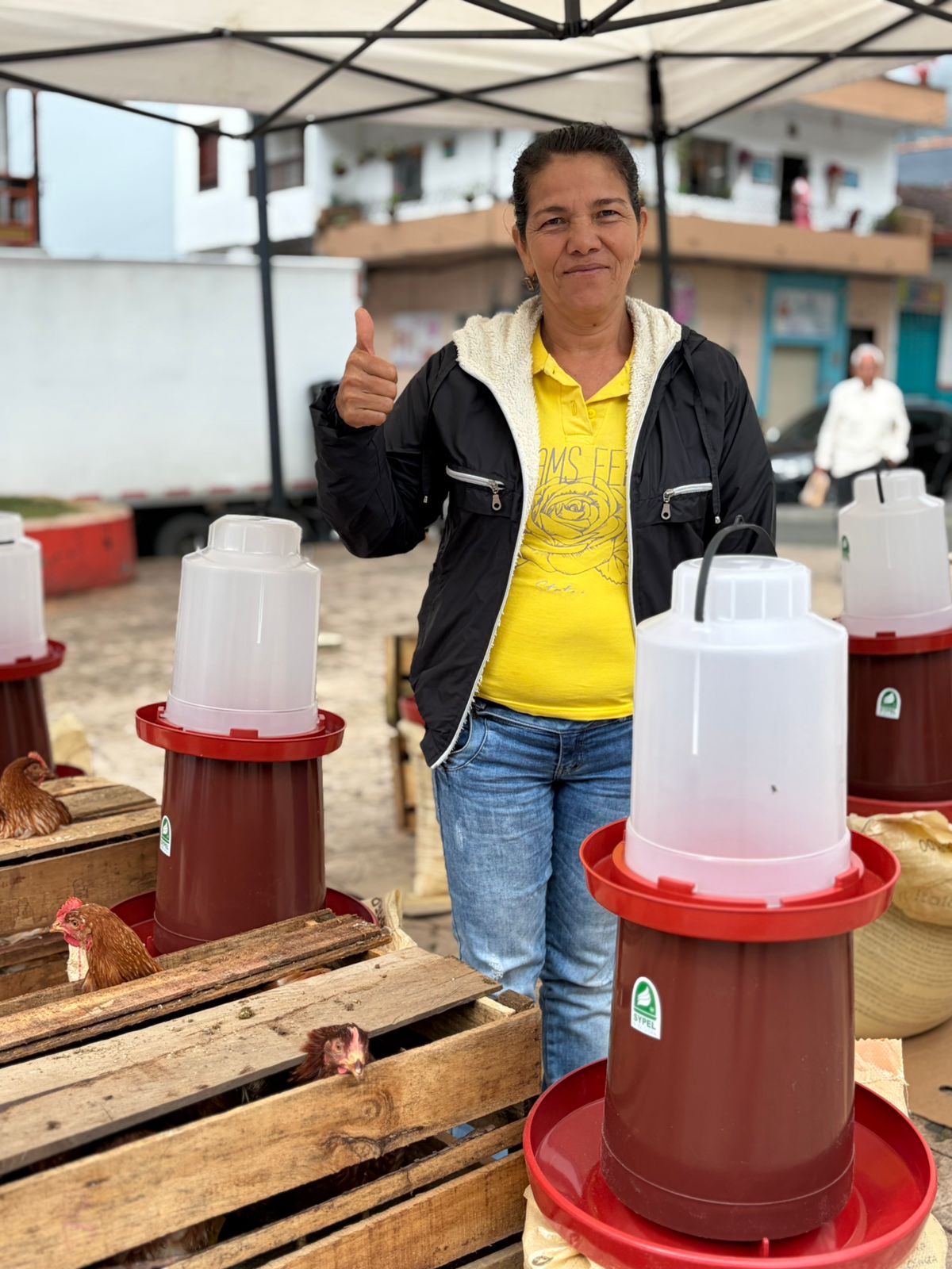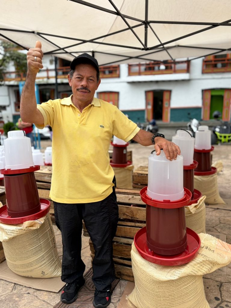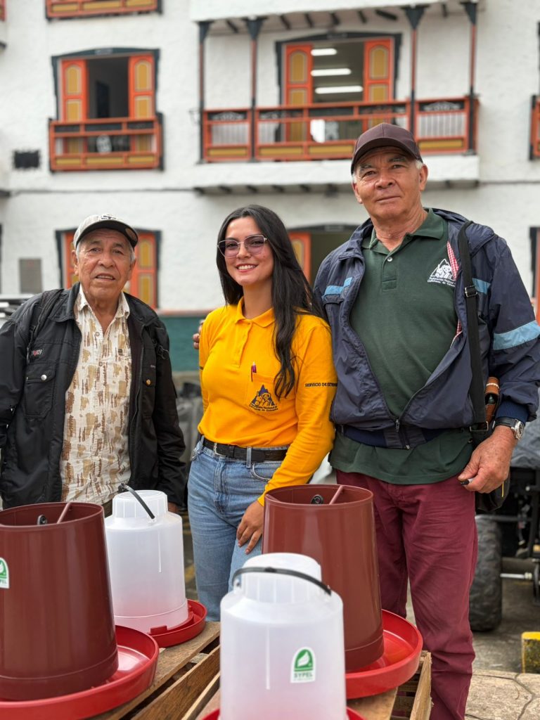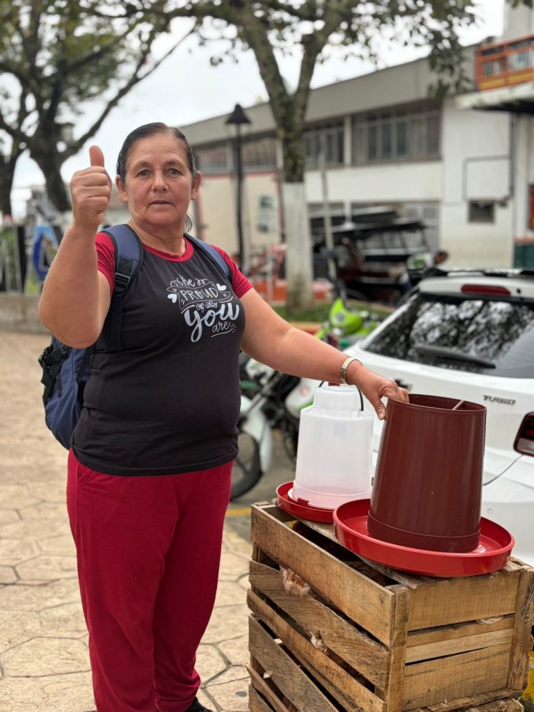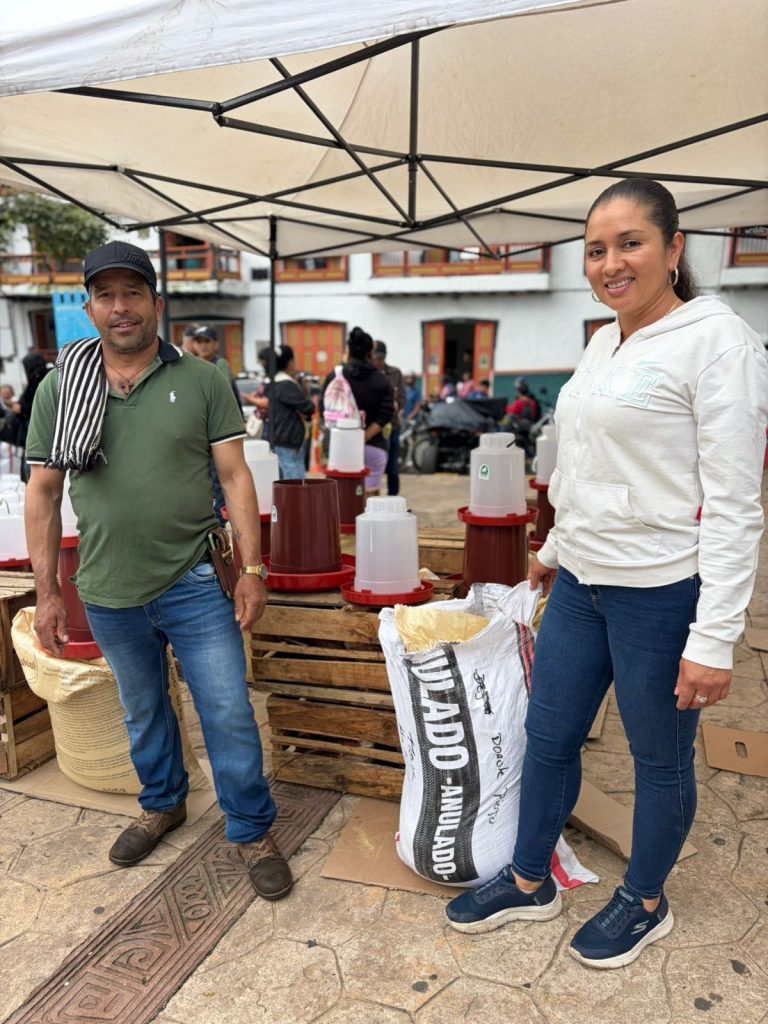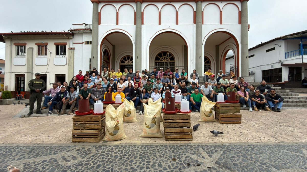 En el municipio de Támesis, 80 familias caficultoras fueron beneficiadas con la entrega de insumos para fortalecer su seguridad alimentaria y diversificar sus ingresos. Cada familia recibió gallinas, bebedero, comedero y un bulto de alimento, herramientas para el desarrollo de proyectos avícolas en sus fincas, que contribuirán al autoconsumo y a la generación de excedentes.