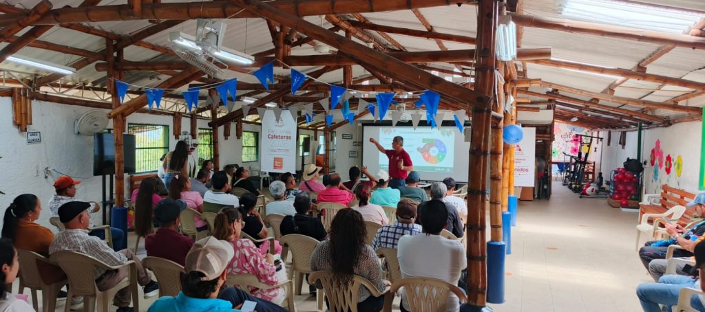 En el corregimiento Alto del Corral, en el municipio de Heliconia, se llevó a cabo un foro que reunió a 51 participantes con el objetivo de fortalecer conocimientos en torno a la economía circular aplicada a la caficultura. Durante la jornada, el investigador de Cenicafé, Nelson Rodríguez, compartió con los asistentes estrategias para el aprovechamiento de subproductos del café, promoviendo el uso eficiente del material vegetal que comúnmente se desaprovecha en la obtención del café pergamino seco. Este espacio permitió sembrar ideas innovadoras entre los caficultores, incentivando su ingenio y creatividad para generar valor agregado y mejorar los ingresos de sus unidades productivas, contribuyendo así a una caficultura más sostenible y rentables.