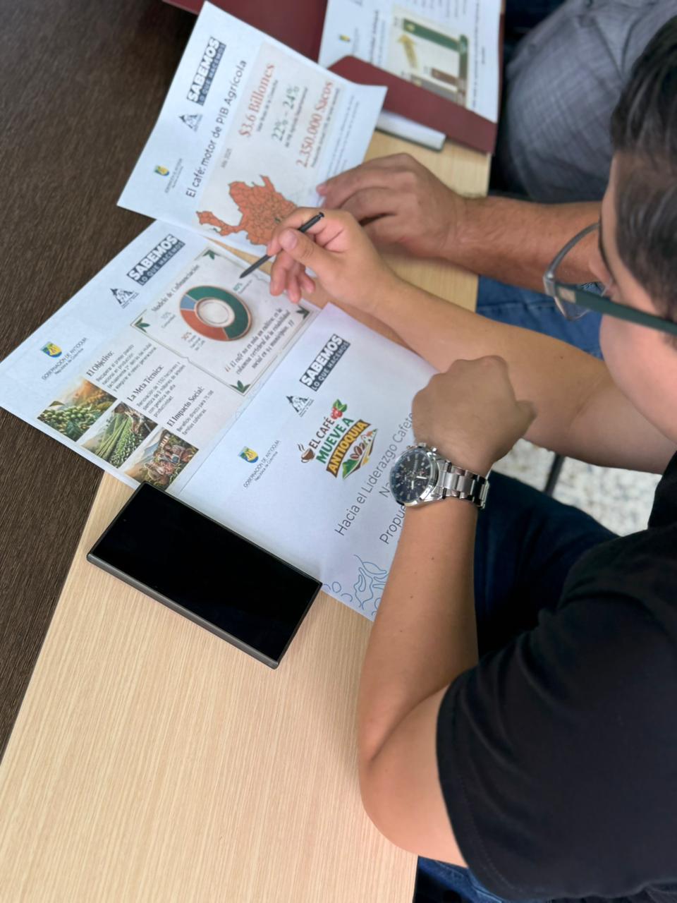 El Comité de Cafeteros y la Gobernación de Antioquia se reunieron para la realización de una alianza estratégica para fortalecer el sector mediante el aumento de la productividad, la densificación de cultivos y el empalme generacional. Entre los principales temas se destaca la estructuración de un proyecto para construir 25 kilómetros de placa huella, con el fin de mejorar la movilidad rural y facilitar la comercialización del grano en los municipios cafeteros.