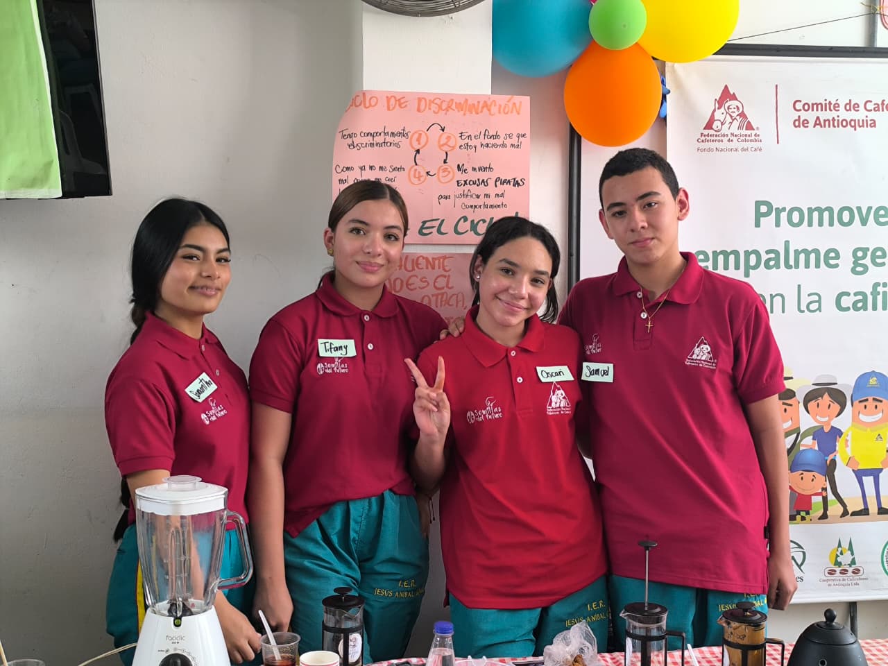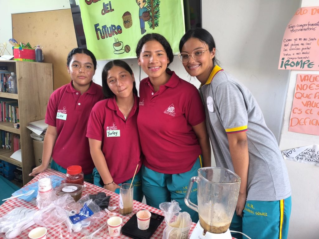 En la vereda Tacamocho del municipio de Tarso, 25 estudiantes de la Institución Educativa Jesús Aníbal Gómez participaron en la actividad “Bebidas con Futuro”, un espacio de aprendizaje y creatividad en torno al café. Los jóvenes profundizaron en los diferentes métodos de preparación y diseñaron sus propias bebidas, en las que la fresa, el carambolo, el banano y el caramelo fueron protagonistas durante el cierre municipal y concurso final.