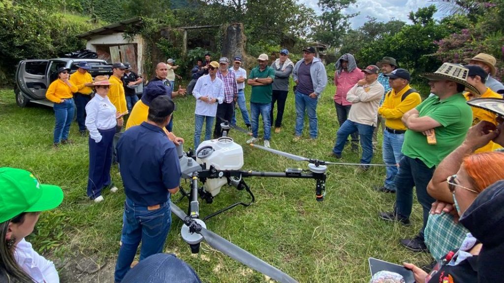 Un grupo de 22 caficultores del municipio de Salgar, Antioquia, participaron en una demostración de método sobre el uso de drones para la aplicación de agroquímicos en sus cultivos. La jornada se llevó a cabo en la vereda La Margarita, donde los productores pudieron observar de primera mano cómo esta tecnología puede ser implementada en las laderas y terrenos característicos de la región cafetera.