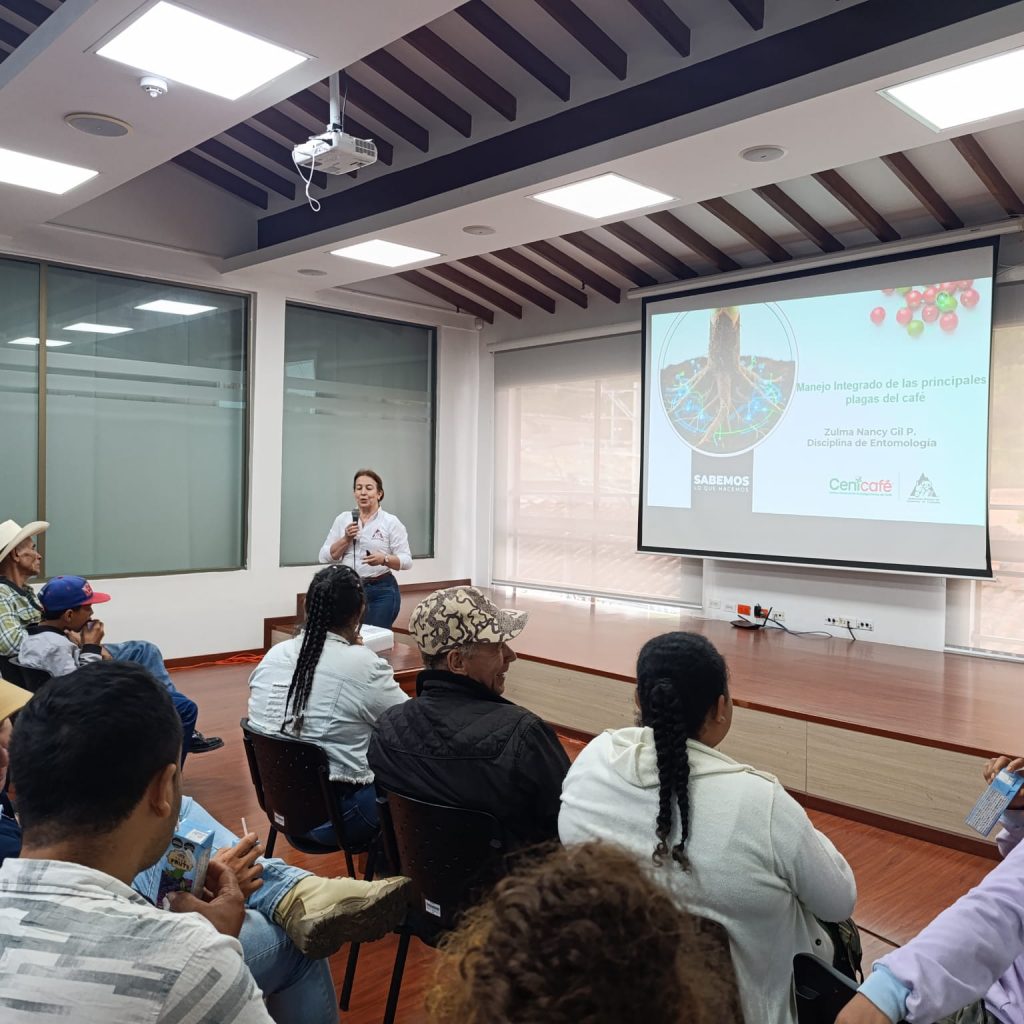 Con el propósito de fortalecer las capacidades técnicas de los caficultores, se llevó a cabo una jornada de capacitación sobre manejo de plagas y enfermedades en el municipio de Salgar, que contó con la participación de 110 caficultores. La actividad fue orientada por las investigadoras de Cenicafé, Zulma Nancy Gil y Rosa Lilian Ferucho, quienes brindaron herramientas prácticas para el control y prevención de afectaciones en los cultivos.
