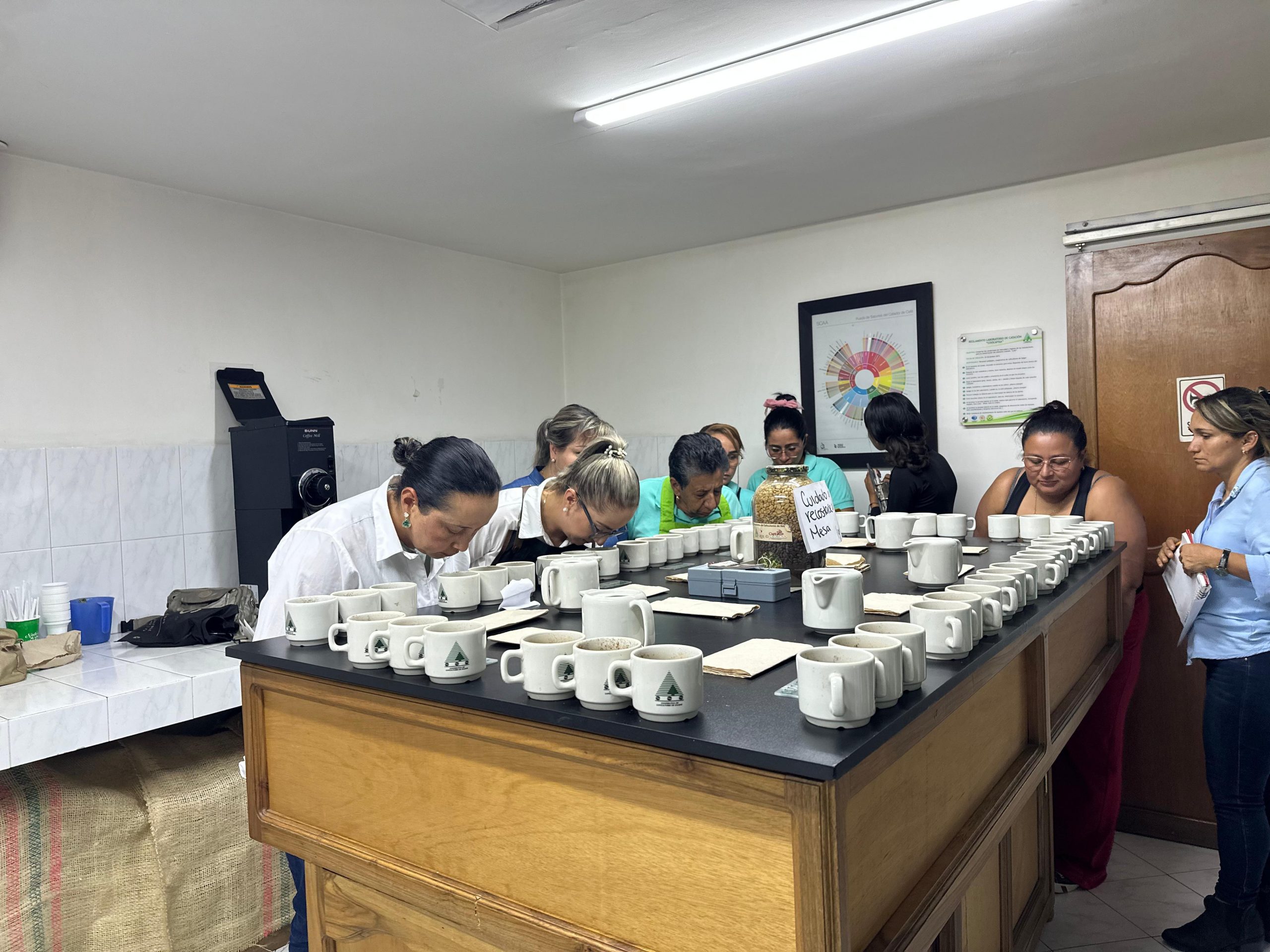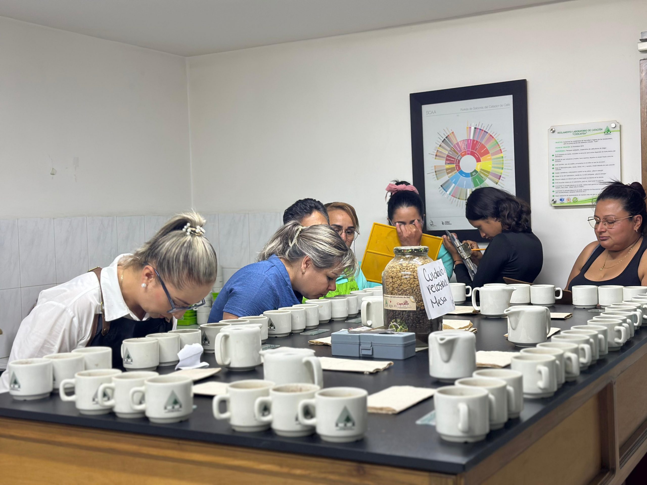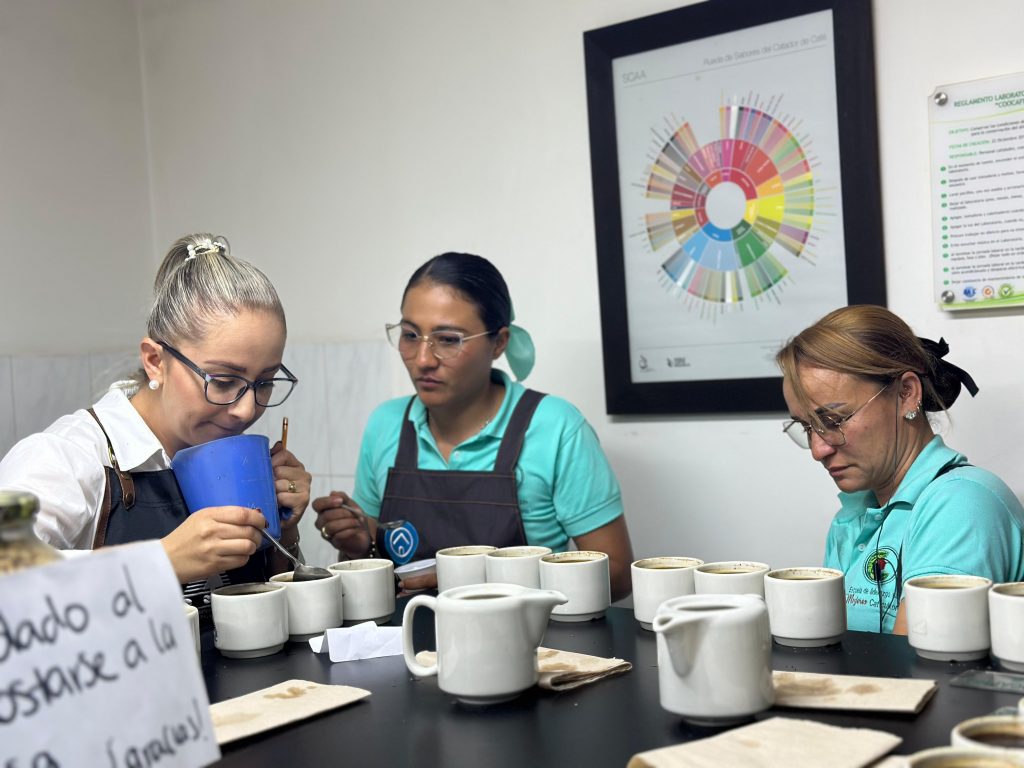 Uno de los momentos más significativos fue el taller de acercamiento a la catación, realizado en alianza con la Cooperativa, donde 14 mujeres llevaron muestras de café cultivado en sus fincas. Estas fueron tostadas y molidas para llevar a cabo un ejercicio práctico de catación, permitiendo a las caficultoras identificar las cualidades de sus cafés y reconocer el potencial de sus productos en el mercado de cafés especiales. Una experiencia enriquecedora que reafirma el compromiso del gremio por visibilizar y potenciar el trabajo de las mujeres en la caficultura.
